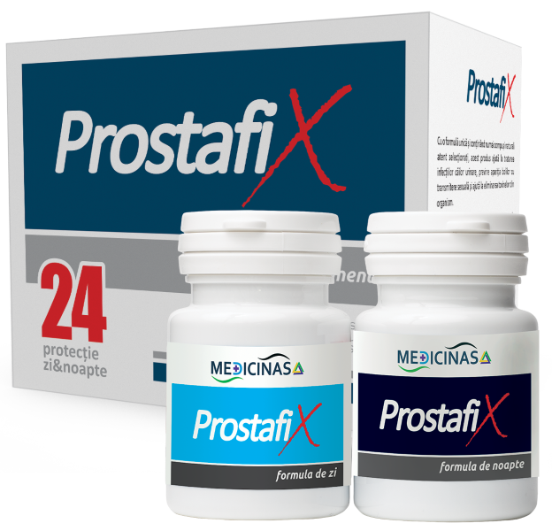 Prostafix este un supliment alimentar revoluționar, disponibil sub formă de două capsule, una de zi și una pentru noapte, ce ajută la eliminarea inflamației prostatei, diminuează frecvența senzațiilor de urinare, ceea ce ajută la eliminarea cu ușurință a urinei.